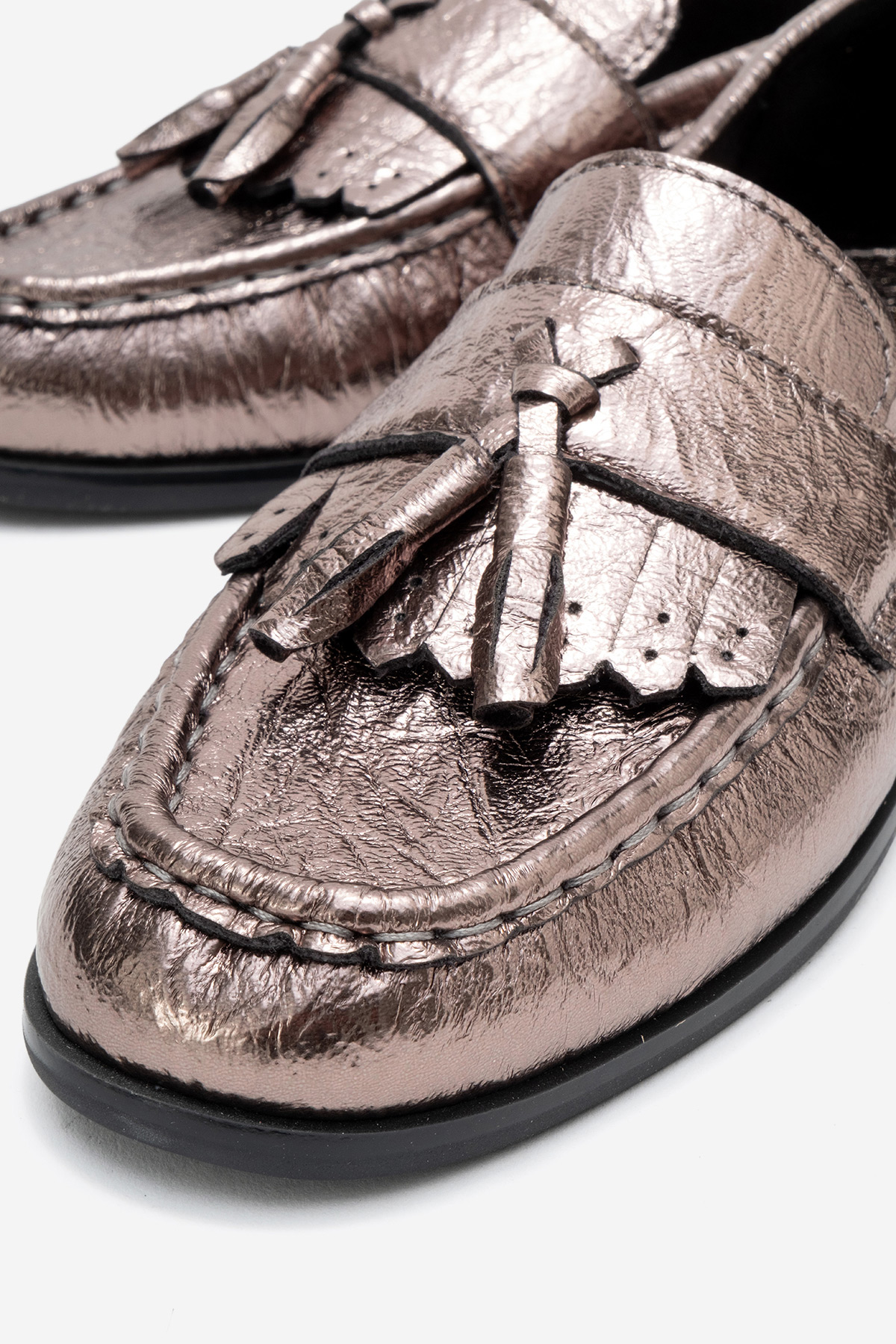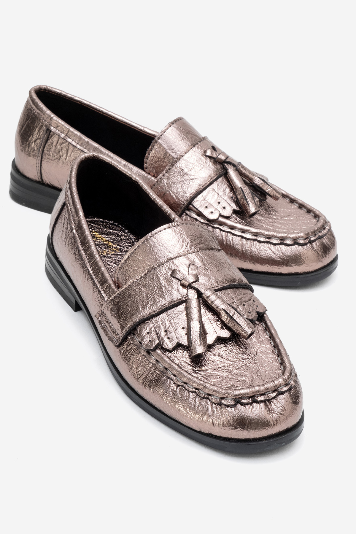 Modern şehir stiline zarif bir yorum getiren loafer , zamansız çizgisini günlük kullanıma taşıyor. Parlak yüzeyi ve püskül detayıyla dikkat çeken bu model, güçlü görünümünü sade formla buluşturuyor. Gün boyu stilini korumak isteyen kadınlar için tasarlanan , ofis şıklığından şehir hayatına kadar farklı stillerle kolayca uyum sağlar. Stiline sofistike bir dokunuş katmak isteyenler için sade ama etkileyici bir alternatif olarak dolabınızda yerini almaya hazır.